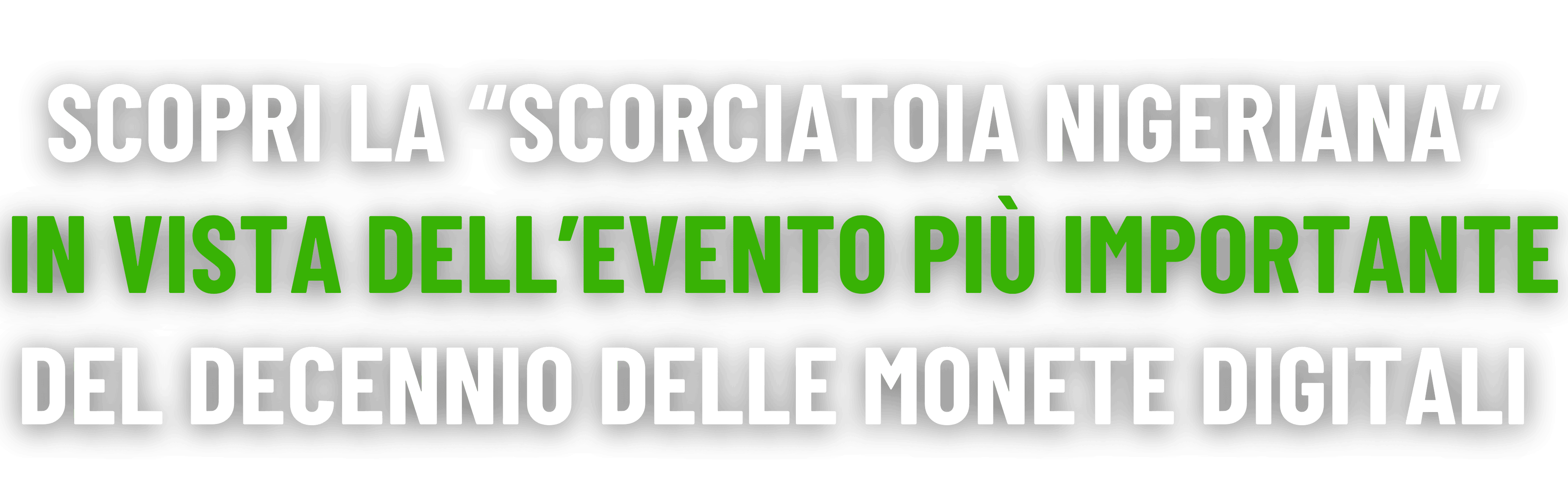 Questo Evento Live ti rivelerà in modo pratico come stravolgere il tuo futuro economico sfruttando la “Scorciatoia Nigeriana” delle Monete Virtuali Esotiche in questa nuova corsa all’oro