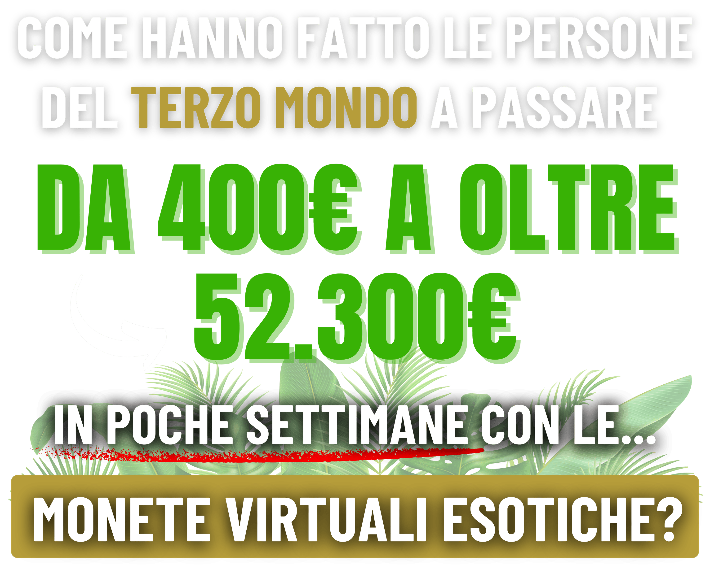 IMPORTANTE: Questa è l’unica occasione per sfruttare la “Scorciatoia Negeriana” per trasformare pochi spicci in oltre 52.300€ grazie alle Monete Virtuali Esotiche. Se ti fai rubare anche questa corsa all’oro ti mangerai le mani per sempre… Garantito!