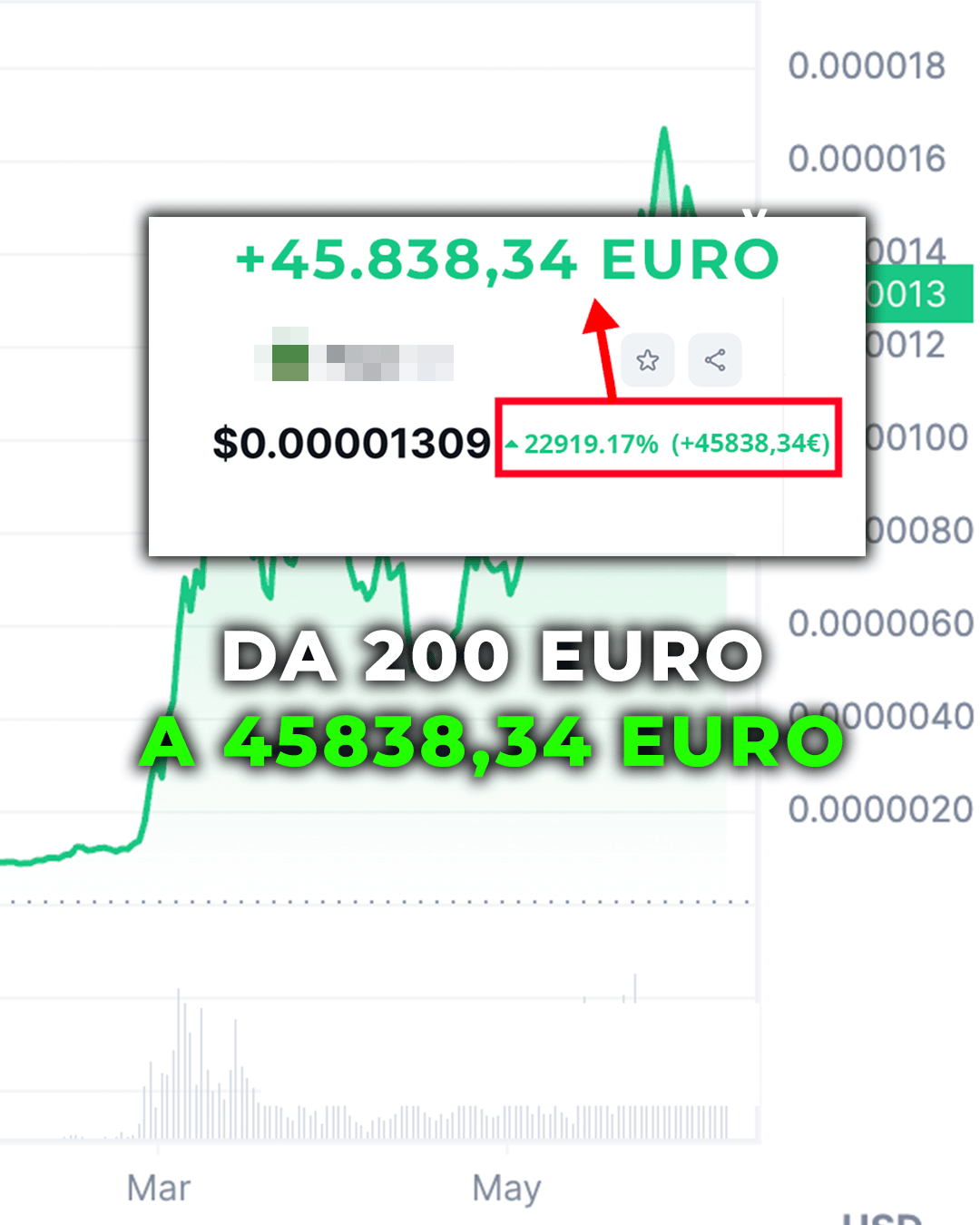 200€ sarebbero diventati 45.838€ quando la Meme-Coin ***** *** ha fatto +22.919%