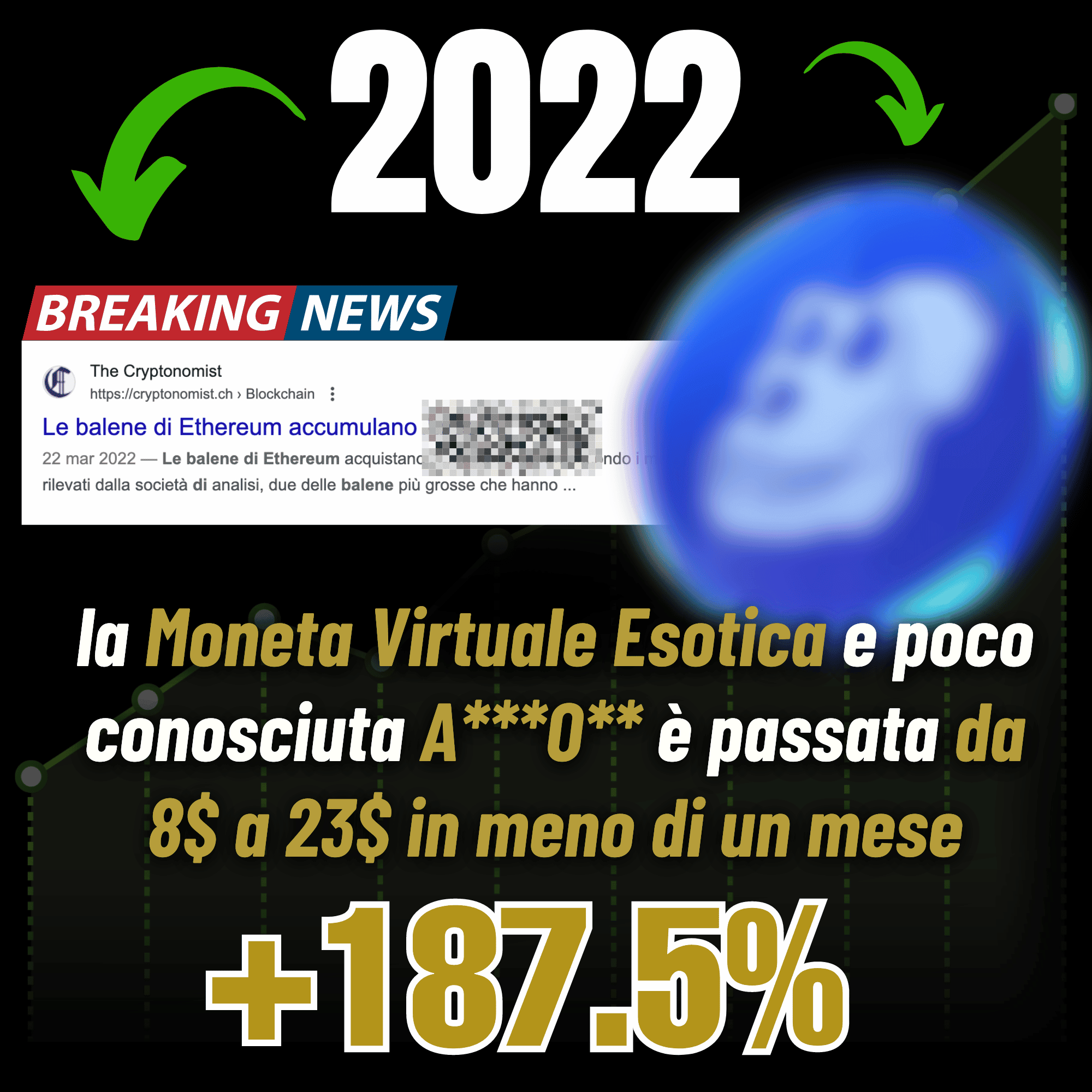 Quando tutti dicevano che le Cr*pto erano morte, la Moneta Virtuale Esotica e poco conosciuta A***O** è passata da 8$ a 23$ in meno di un mese, facendo un +187.5%