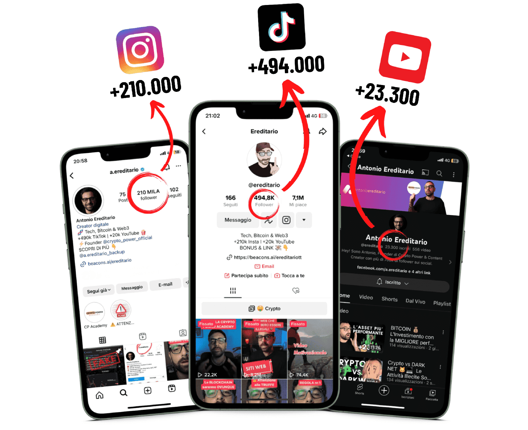 Ho creato una community dedicata alle monete digitali che conta oltre 210.000 follower su Instagram, più di 490.000 su TikTok e oltre 23.000 iscritti su YouTube